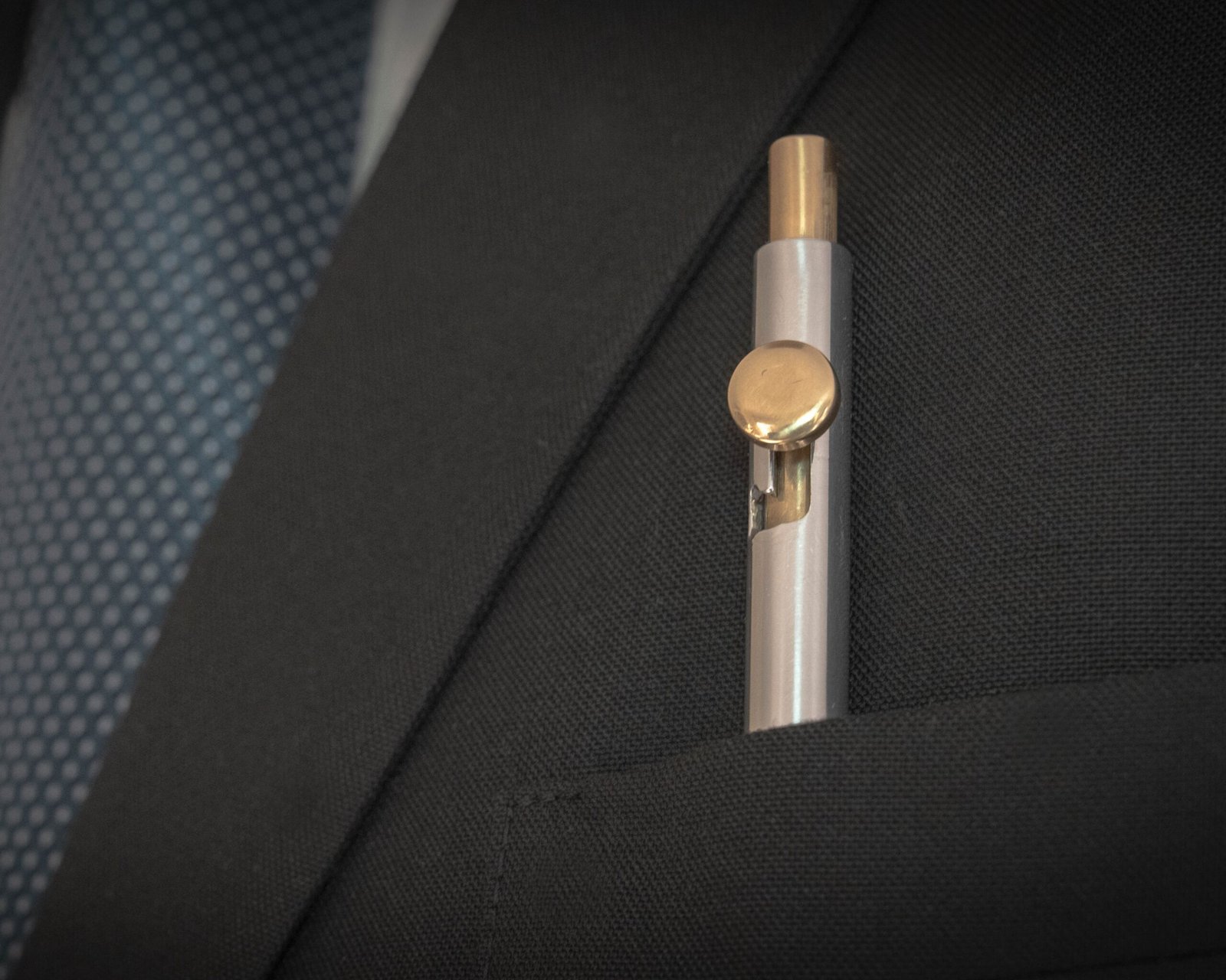 Handcrafted from 6061 aluminium alloy with brass accents, Luna features our signature bolt-action mechanism that delivers a deeply satisfying tactile experience.